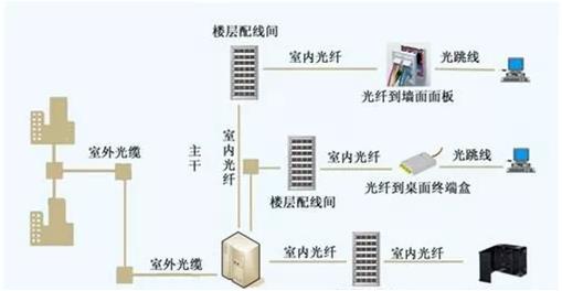 通常,综合布线中,我们都会遇到室内和室外光缆的敷设,室内光缆的敷设室内光缆主要是应用于水平子系统和垂直主干子系统的敷设。水平子系统光缆的敷设与 双绞线非常类似,只是由于光缆的抗拉性能更差,因此,在牵引时应当更为小心,曲率半径也要更大。垂直主干子系统光缆用于连接设备间至各个楼层配线间,一般 装在电缆竖井或上升房中。而室外光缆主要用于建筑群子系统的布线。在实施建筑群子系统布线时,应当首选管道光缆,只有在不得已的情况下,才选用直埋光缆或 架空光缆。