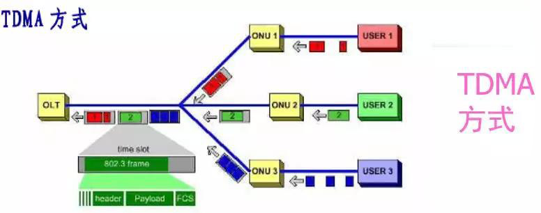 b、每个ONU在由局方设备统一分配的时隙中发送数据帧。