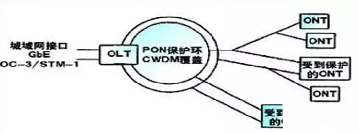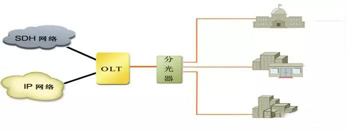 无源光纤传输方式的网络拓扑结构,主要由OLT (光线路终端),ODN(光纤配线网络 ),ONU(光网络单元)组成。