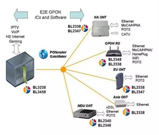 GPON主要采用的组网方式有FTTH/O、FTTB+LAN和FTTB+DSL三种。