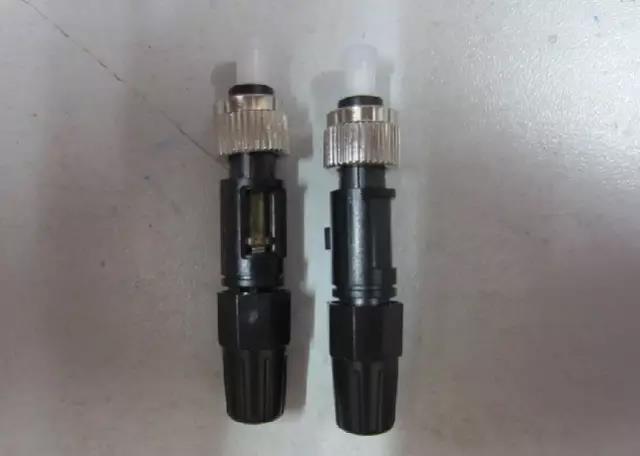 FC型光纤接头/跳线(俗称圆头):其外部加强方式是采用金属套,紧固方式为螺丝扣,一般在ODF侧采用。FC连接头一般电信网络采用,有一螺帽拧到适配器上,优点是牢靠、防灰尘,缺点是安装时间稍长。