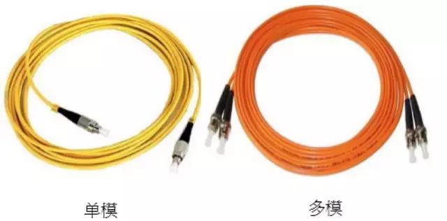 按照光在光纤中的传输模式,可以分为:多模光纤(MMF,Multi Mode Fiber)和单模光纤(SMF,Single ModeFiber)。多模光纤的中心玻璃芯较粗(50或62.5μm),可传多种模式的光。但其模间色散较大,这就限制了传输数字信号的频率,因此多模光纤传输的距离就比较近,一般只有几公里。单模光纤中心玻璃芯很细(芯径一般为9或10μm),只能传一种模式的光。因此,其模间色散很小,适用于远程通讯。一般情况下外皮为橙色的为多模,黄色的为单模。