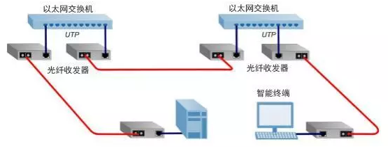 这种类型的光纤收发器能够连接用于以太网、快速以太网和10G以太网的设备,实现具有不同速率和不同端口类型的设备间的无缝连接,通常被应用于点到点间传输的转换,校园里传输的转换等。比如在进行点与点间传输的转换时,两个光纤收发器可用于连接两个UTP(Unshielded Twisted Paired,非屏蔽双绞线)以太网交换机,或者直接将UTP交换机连接到智能终端上。