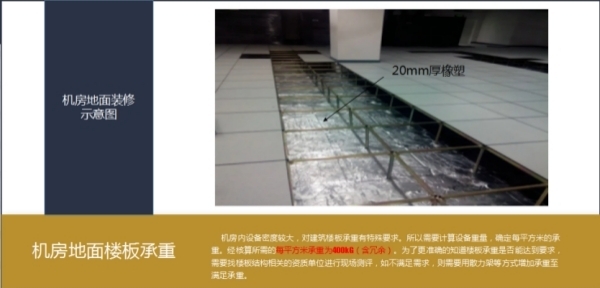 2. 承重:机房的地面应该具有足够的承重能力,以承载设备重量和操作人员的重量。