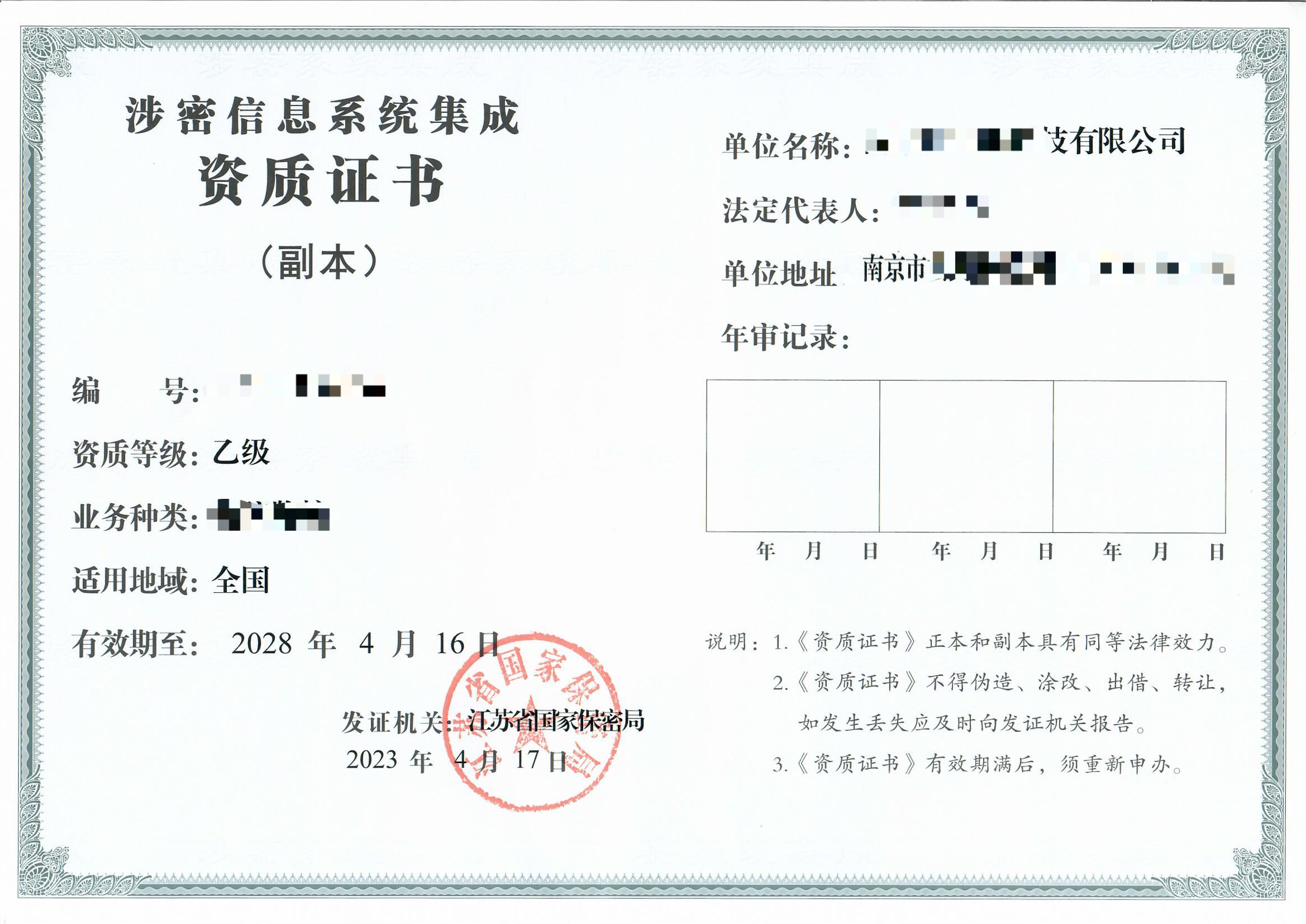 四、关于南京仲子路科技公司的涉密信息系统集成资质