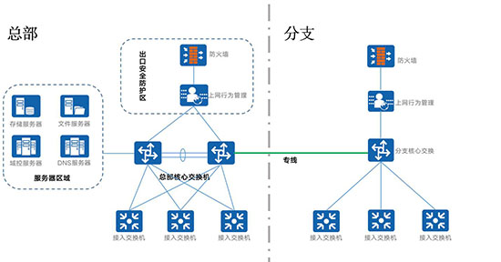 根据目前对贵公司的了解,贵公司目前已经搭建好了AD域,将总部与分支的内网部分都已搭建完毕,但总部需要对分支的网络设备进行管理以及上网行为的管控和出口的安全防护;据以上情况,我们这边对分支及总部各增加一台防火墙和一台上网行为管理设备进行实现。