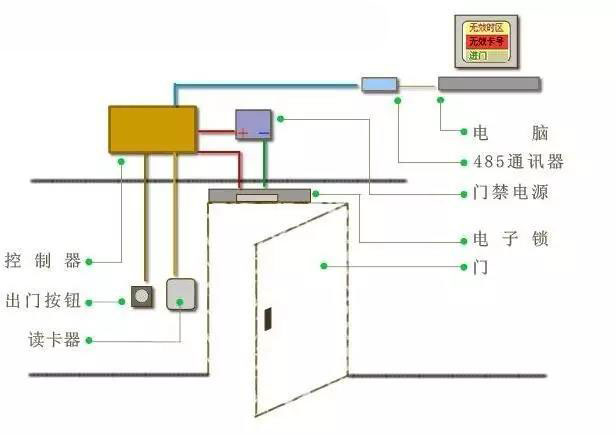 最基本的应用,门口使用非联网,不可看记录的单门一体门禁机,读卡器,锁,电源等