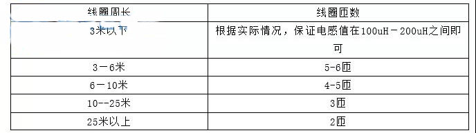 在线圈的绕制过程中,应使用电感测试仪实际测试电感线圈的电感值,并确保线圈的电感值在100uH—300uH之间。否则,应对线圈的匝数进行调整。