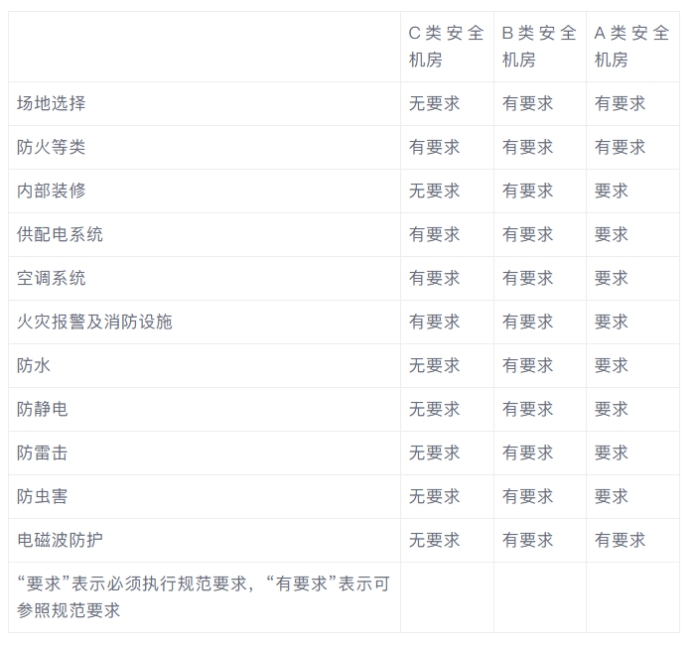 A、B类机房有要求: