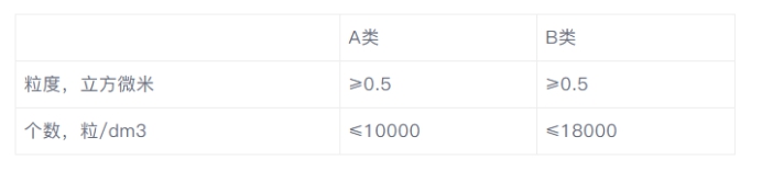 注:A类相当于30万粒/ft3 ,B类相当于30万粒/ft3