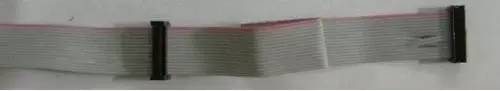 根据下图制作一根数据线。蓝 色和红色为到排线,其中红色是需要注意的部分。黄色方框为排线头。建议使用排线钳。