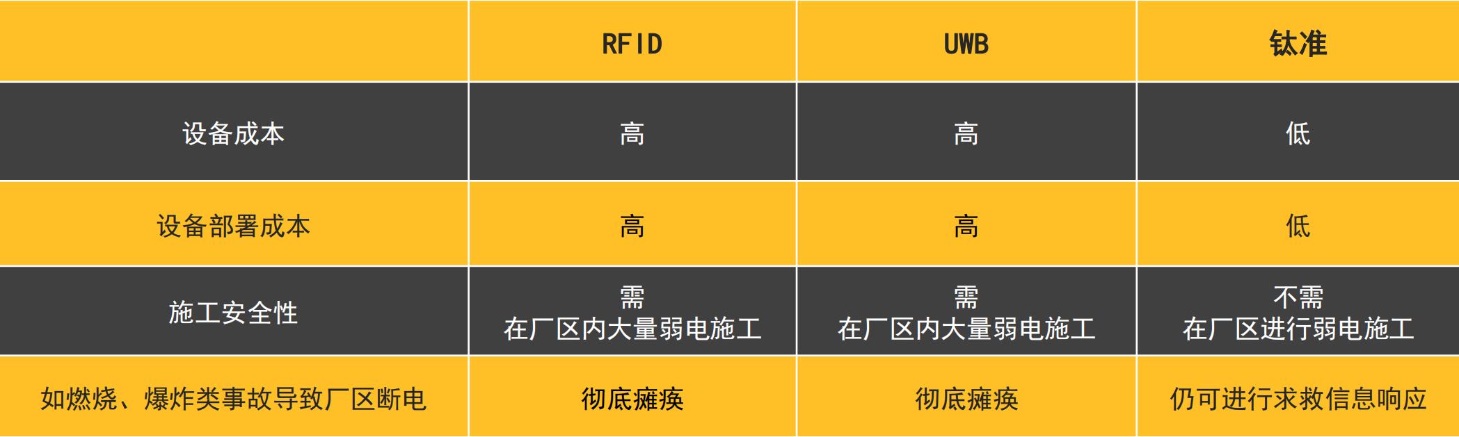 ◎ UWB基站与RFID读卡器均需要电源与通信线路施工,施工成本高