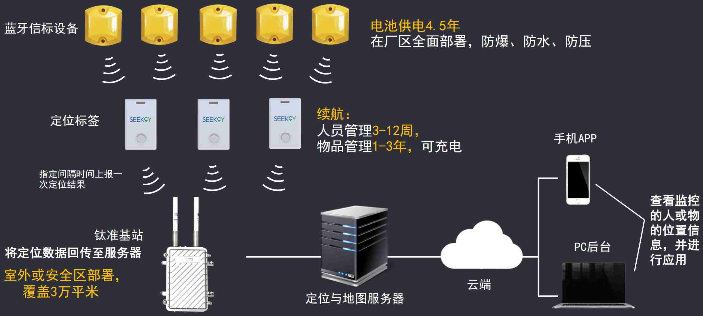 ◎ 蓝牙信标易于部署、价格便宜无需在危险区走线施工
