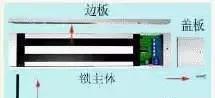 D:固定锁主体与边板锁紧边板的半圆头螺丝后,再锁上所有的沉头螺丝,然后再卸下半圆头螺丝,在适当的位置钻孔以便接线。最后用六角扳手把锁主体锁在边板上。(参见图四)