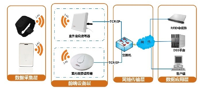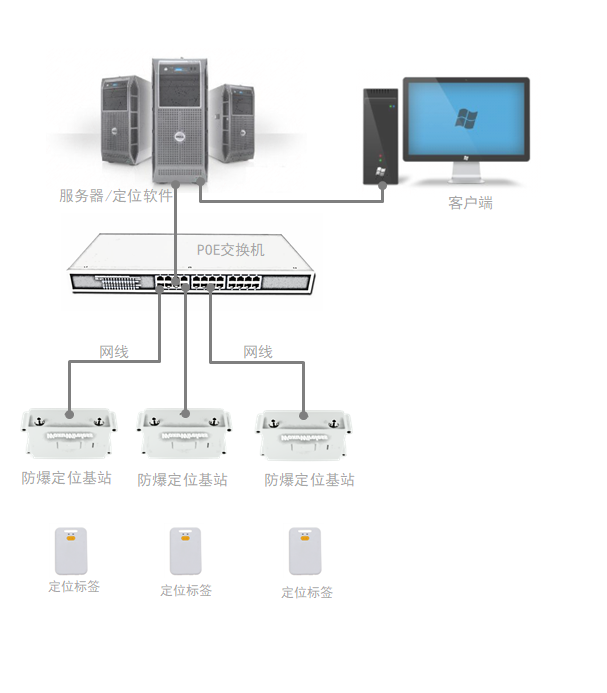 传输层面一般通过网络线缆将定位基站接入到POE交换机,再将数据汇总到控制中心的服务器上。