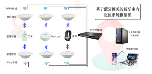 定位基站远距离并行接收定位器传输的定位数据,将数据汇总后通过网络系统上传至定位引擎。蓝牙的定位基站一般水平间距5-10米,垂直间距3米左右;