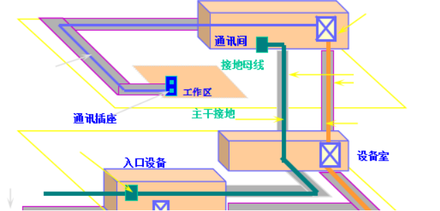 设备间子系统由设备间中的电缆、连接器和有关的支撑硬件组成。它的作用是把公共系统设备的各种不同设备互连起来。该子系统将中继线交叉连接处和布线交叉连接处与公共系统设备连接起来。该子系统还包括设备间和邻近单元如建筑物的入口区中的导线。这些导线将设备或避雷装置连接到有效建筑物接地点。