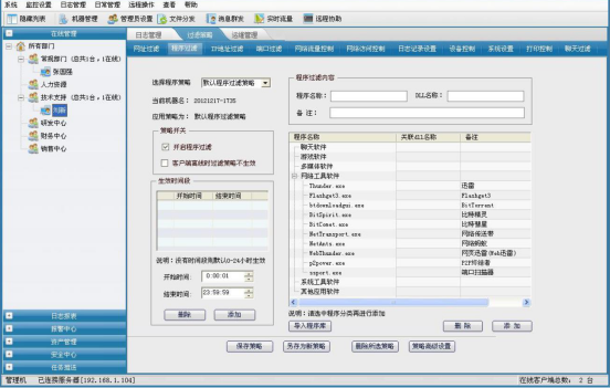 从上面的几项中可以看出,对于新增的 f 、g、h 项。可通过运维软件的监控模块及服务流程模块进行管理。通过 i 项可以看出,通过桌面运维软件,配合流程管理系统,可解决远程操作的相关问题,提高管理过程中问题的解决速率。系统可以定时记录员工计算机屏幕日志,数据保存到服务器上。管理员可以查看整幅屏幕图片,也可以通过缩略图方式查看。管理员可以通过远程协助功能,实时查看并控制客户机的屏幕,也可以通过多屏查看,多同时查看 25 个电脑的实时屏幕。软件通过显卡镜像驱动实现屏幕远程控制,性能好,效率高。