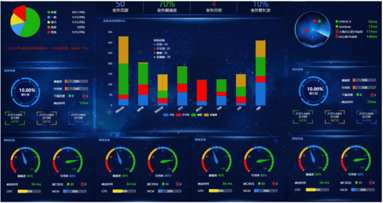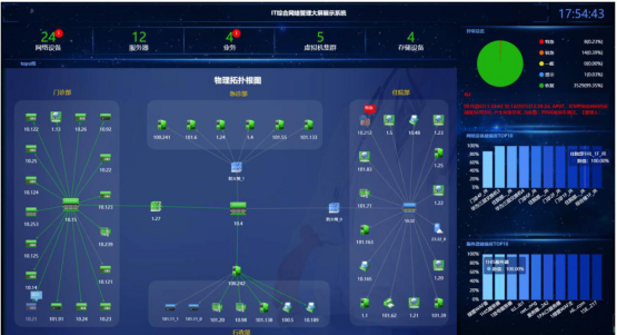根据 7.1.10.4 的要求,不难看出,此处可选用运维管理软件的集中设备监控系统和运维服务流程管理系统。通过整体监控,对不同的厂家设备,不通平台的设备,不通批次的设备进行全面的集中监控,7X24 小时不间断的对运行情况实时监测和统计,了解每个业务系统节点的运行情况。
