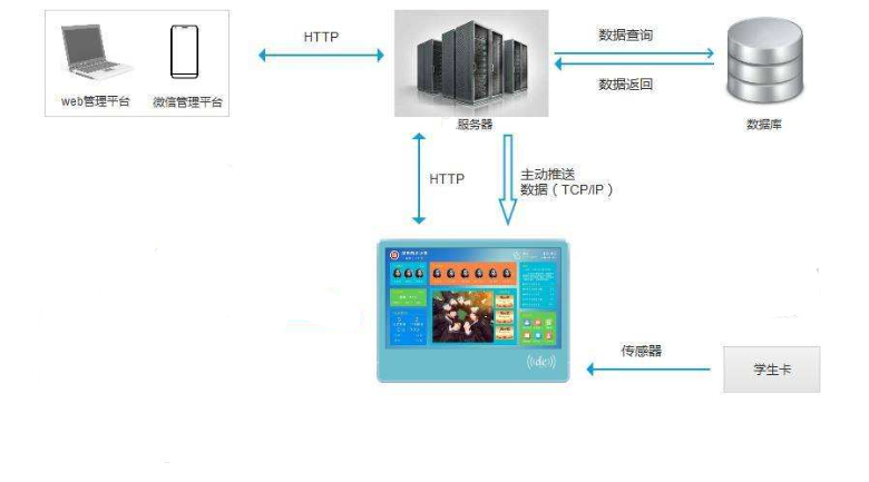 教师和学校管理人员可通过电脑端或手机端信息发布管理软件对信息发布服务器进行操作,发布显示电子班牌上的内容,同时通过微信公众号与家长互动,让家长及时了解到学生的在校情况。