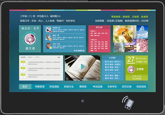 同时电子班牌系统也可构成学校和家长沟通的良好平台。通过移动端,家长可以及时全面的了解孩子在学校的情况:包括入校、离校的时间,老师布置的作业和考试成绩,学校举办的各项活动及校园动态,在线互动交流。