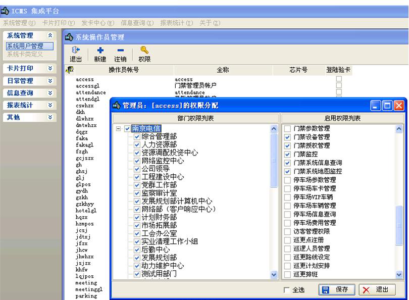 统一的操作员管理,通过对操作员的权限授权允许进入各个子系统操作,并有详细操作日志。