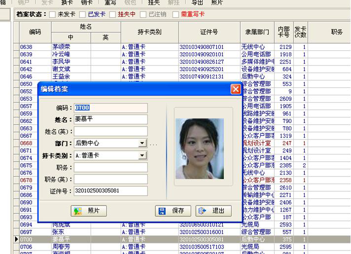 此工序是在系统里办理新的员工卡的注册,完成卡内存储区的分区并写入有关个人信息。只有注册后的员工卡方可使用。另外补卡、挂失、注销等手续也在发卡中心办理。