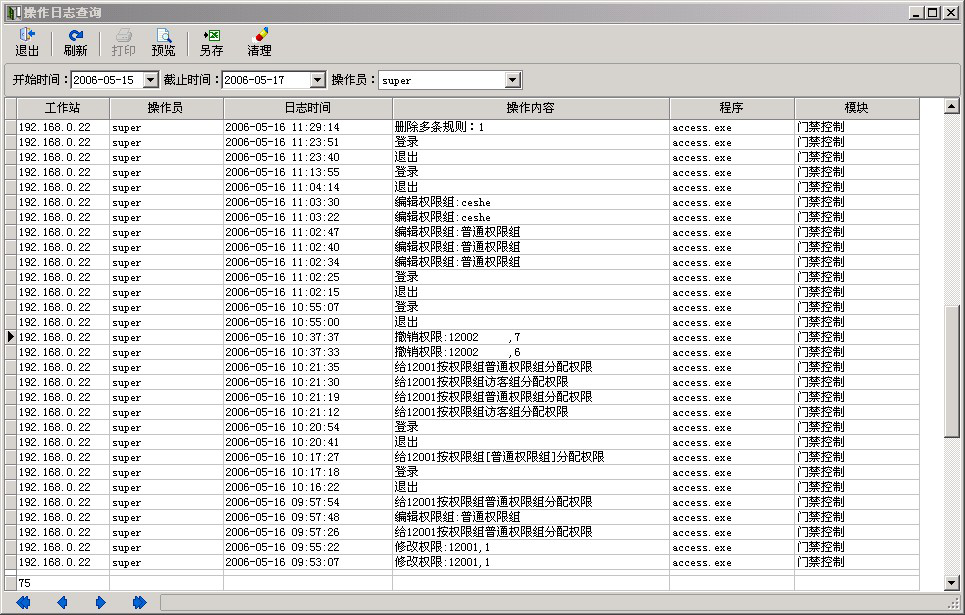 系统中每个发生的事件都有详细记录,如每次门锁打开和关闭的时间、开门卡编号、报警输入的原因和位置等。这些记录信息在一定条件下可以共享,作为原始数据提供给其他相关系统,具有良好的兼容性。