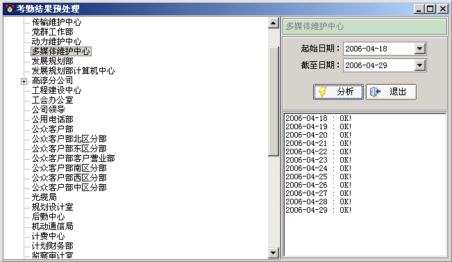 员工的考勤情况记录在数据库,但是要统计出员工迟到、早退、旷工等情况还需要进行记录处理,即将记录在数据库里的数据按照制定的考勤规则来约束,分析员工在指定日期内的考勤情况;