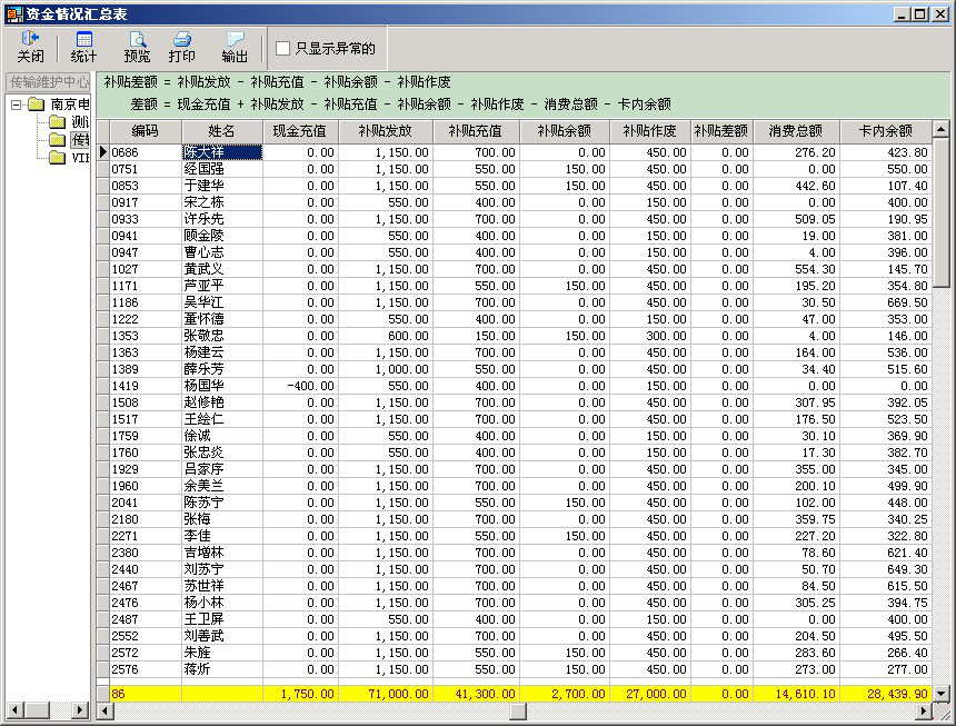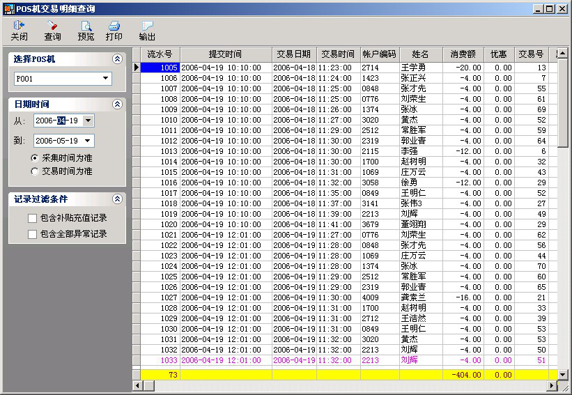 提供个人消费、充值、补贴等各项明细。POS机、营业组的交易流水等。可选配WEB查询模块。
