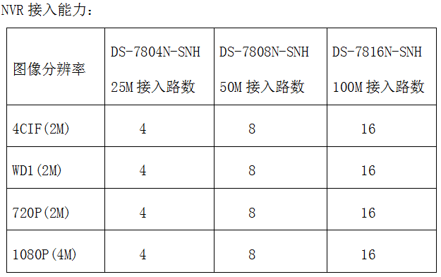 NVR支持全通道高清接入,即4/8/16路NVR分别支持4/8/16路1080p(4Mbps)/720p(2Mbps)IPC接入,节约NVR硬件购置成本。