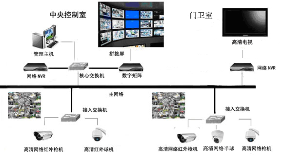 小区视频监控系统视频控制信号都通过IP网络方式传输到监控中心。