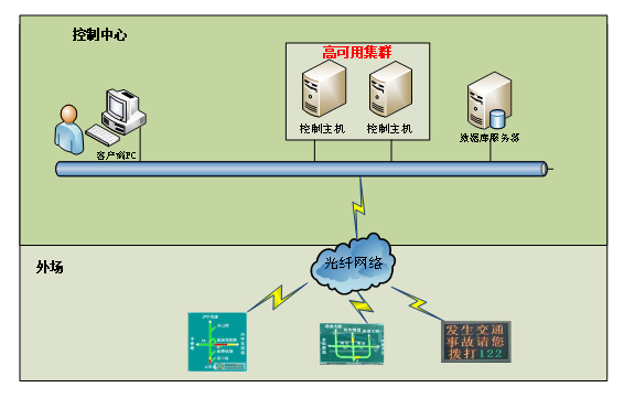 (1)外场的交通诱导屏通过光纤网络与控制中心通信。