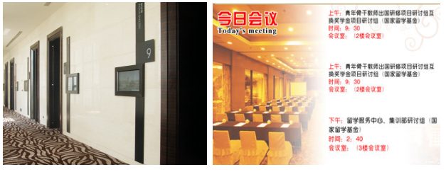 (3)会议引导:播放预先定制的图文信息或会议室预定情况、会议室状态(会议议程、时间、主题等);
