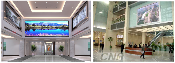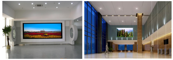 设计依据:屏幕尺寸大、配合装修、醒目显示/近距离观看、全彩显示、配合装修;