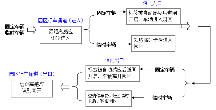 在园区的出入口安装感应式无障碍通道闸,人员只需将识别卡装在包里或身上口袋,接近通道闸时自动被识别,自动开闸,将人员的出入记录自动上传至服务器作为考勤数据;