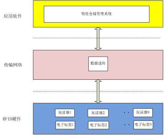 整个系统从架构上分为RFID硬件、传输网络及应用系统。