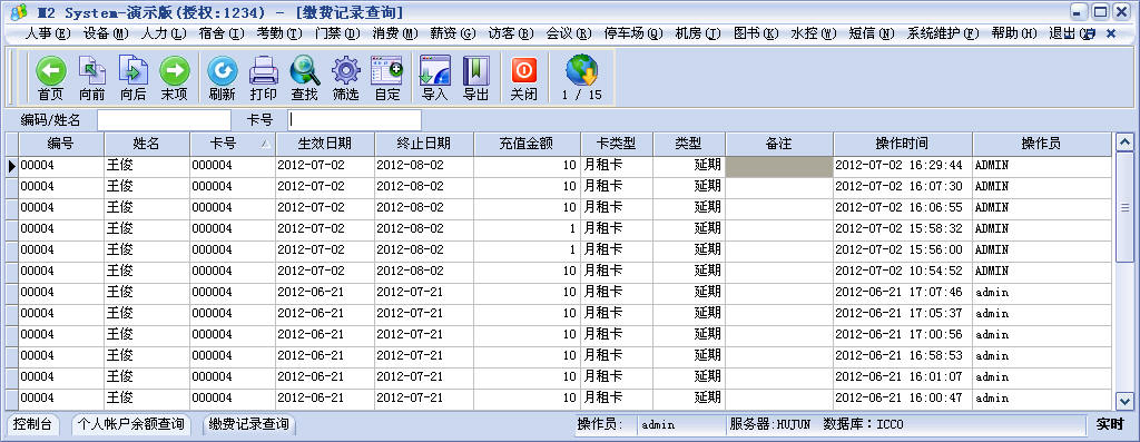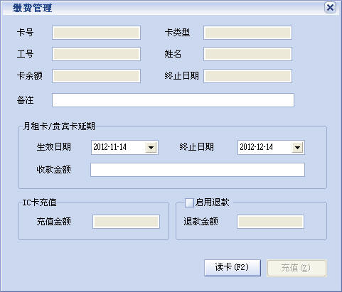 缴费管理:可以对储值卡充值,月租卡、贵宾卡收费延期,有退款功能。