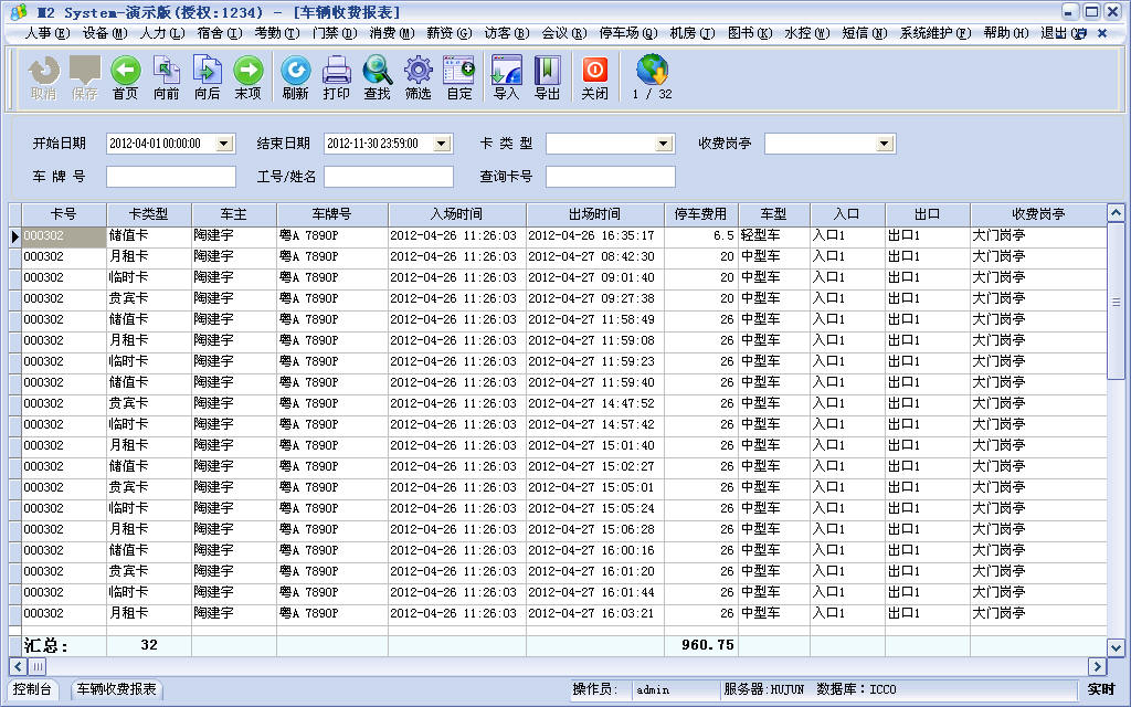 车辆收费报表