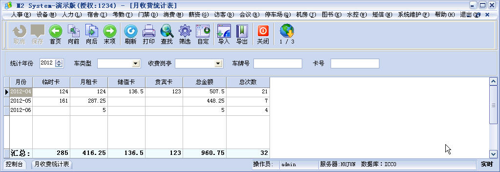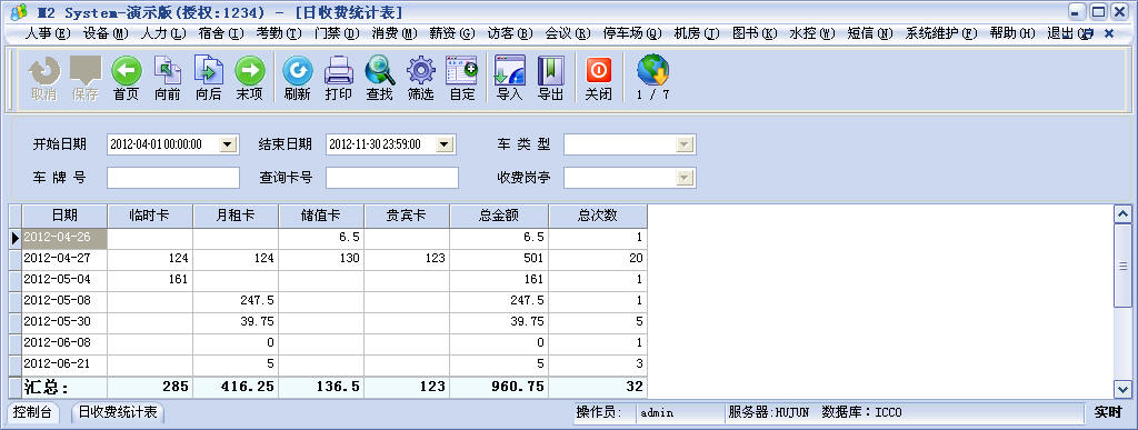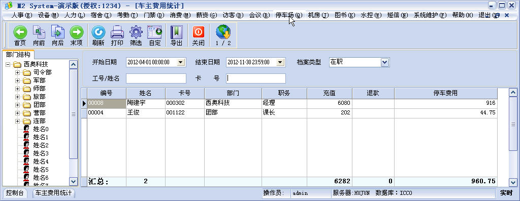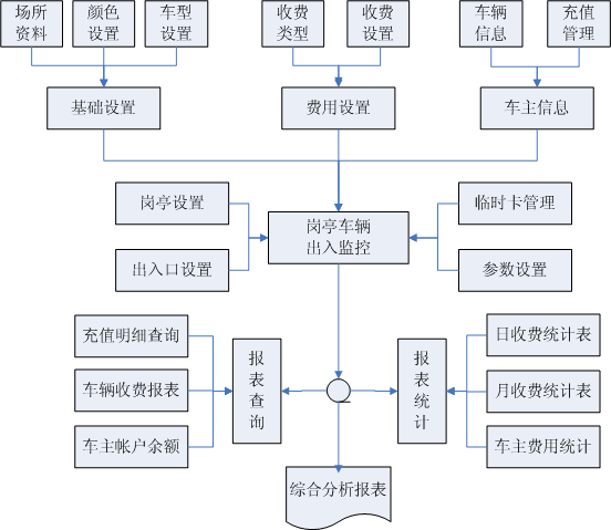 管理中心:运行系统管理软件,管理系统所有数据,是数据处理、停车场收费方案,卡片管理、报表查询等核心操作的管理程序。