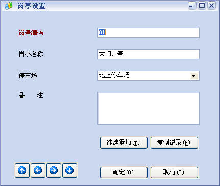 岗亭设置:设置岗亭编码、名称、属于那个停车场。