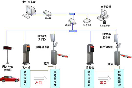 整个系统主要包括入口设备、出口设备、岗亭收费系统和停车场管理系统。