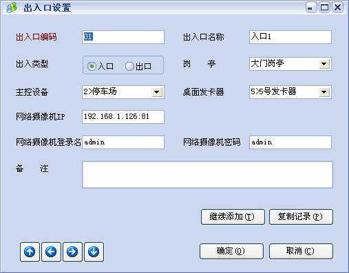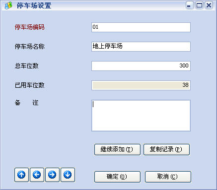 场所资料:设置停车场编码、名称及总车位数。