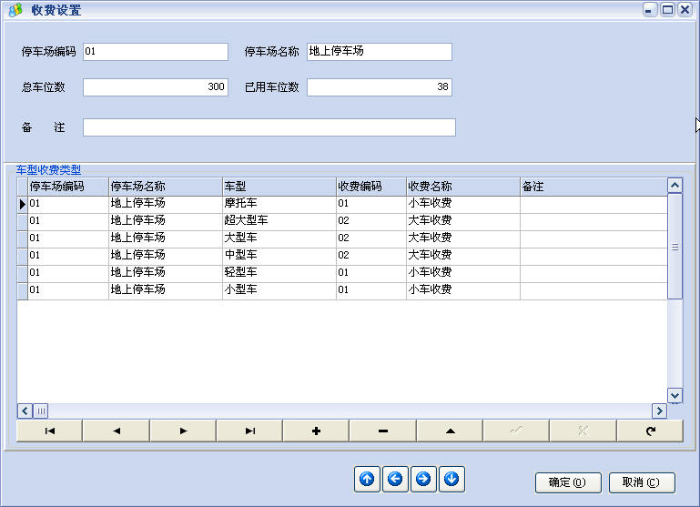 收费设置:根据停车场、车型指定收费类型。