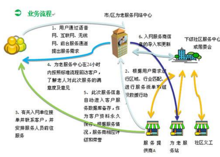 1、为主管机关或运营单位建立一套完整的居家养老服务管理及协调机制;