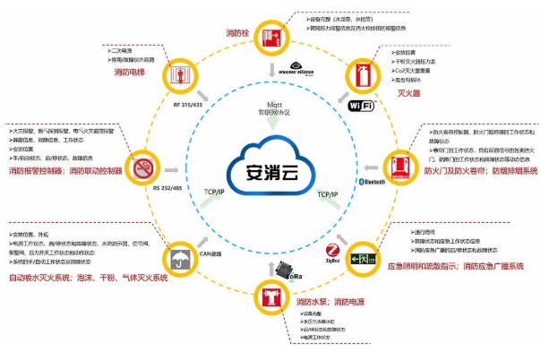 实现消防设施运行及监管的现代化必须构建有效的的智慧消防监控物联网系统,采用消防自动报警系统已有的各种感知设备、视频采集设备等,将感知采集到的大量现场信息,借助消防物联网传输到消防指挥中心,将过去封闭、功能单一的火灾报警系统改造为网格化、智能化的跨区域火灾报警综合管理平台。