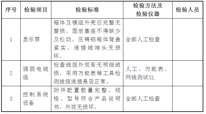 从施工放线开始,钢结构施工队进场,本工程施工顺序为施工放线→钢结构安装焊接→强弱电线路铺设→屏体安装→包边收尾→裙系统设备安装→屏体及系统初调→控制系统调试及故障处理→试运行及故障处理→用户培训→稳定运行竣工验收