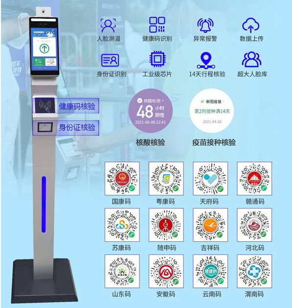 健康码普及应用广泛,几乎出入各类大型公共场所均须凭码(手机健康码)通行,目前全国每月健康码凭码通行量超过亿级,在此背景下,健康码核验终端成为我们出入各类重点公共场所最常接触的疫情防控通行设备,可全方位防疫、无感知通行,为常态化防控及严防境外疫情提供了有力支持。