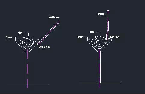 栅栏+铁刺滚网形态的物理周界,该形态周界,充分考虑线路隔离问题,采用侧装、立装两种方式样式如下: