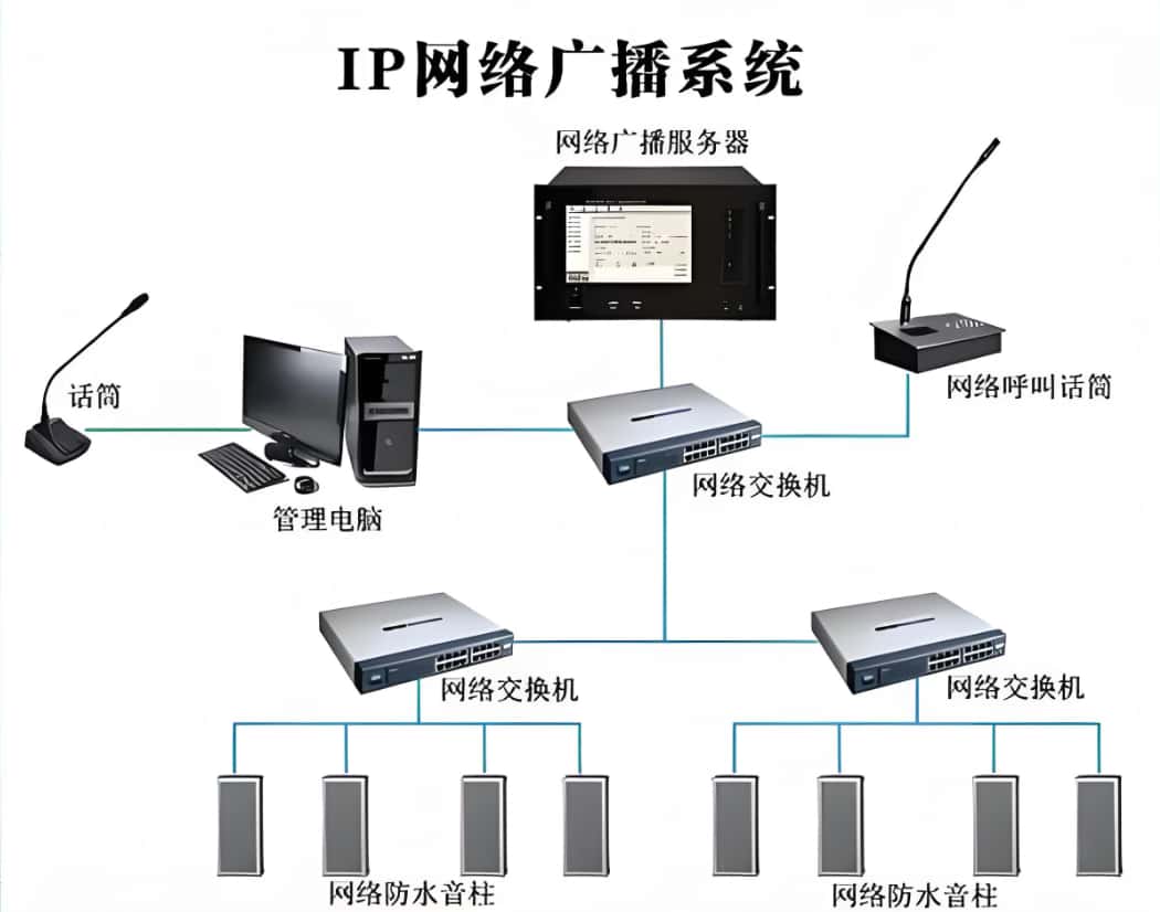 园区 / 厂区公共广播与数字广播系统旨在为园区或厂区提供全方位、高质量的声音传播服务。该系统具备日常广播、紧急广播、分区广播等功能,可满足园区内不同区域、不同场景的广播需求,如通知发布、背景音乐播放、紧急疏散引导等。